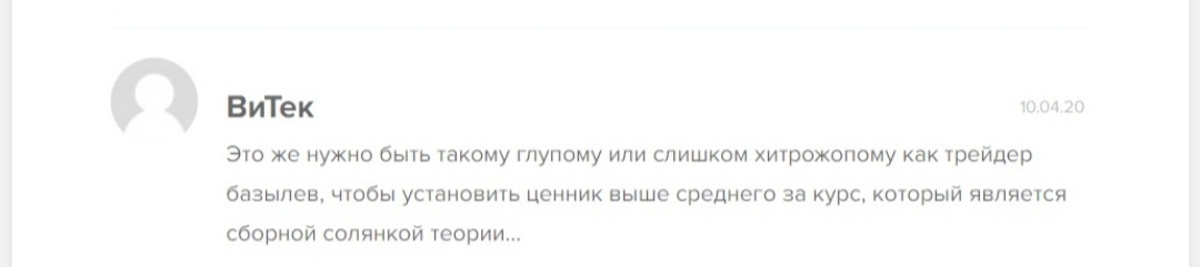 Будьте осторожны: работа с проектом может не принести желаемый результат. Если у вас есть опыт опыт обучения в BazylevTrade, напишите свое мнение. Это очень поможет другим пользователям.