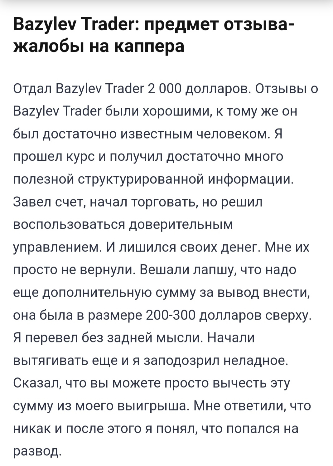 Реальные отзывы о BazylevTrade