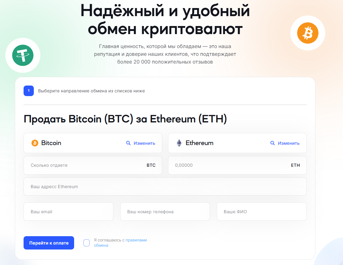 Сайт beatstay com представляет из себя одностраничник с простым интерфейсом. Большую часть пространства занимает именно окно обмена. Здесь можно выбрать токены, указать сумму, узнать комиссию, а также указать реквизиты и контакты для дальнейшей операции. Здесь же указано. что проект обладает хорошей репутацией и имеет более 20 тыс. положительных отзывов. Такие показатели действительно впечатляют, однако это лишь ничем не подкрепленные слова.