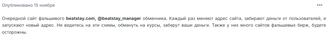 - негативные отзывы о Beat Stay подтверждают, мошеннический характер проекта.