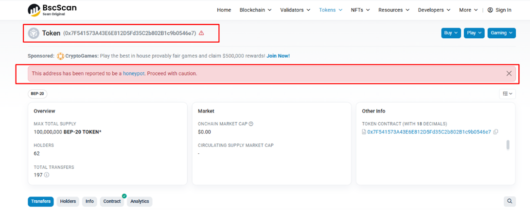 Binance ai bai token, вероятнее всего, был создан для маскировки под другую монету с идентичным сокращением. Ею является BAI Stblecoin. Она выпущена в 2022 году. Данный токен создан на основе блокчейна BNB. Проверка через сервис Bscscan показывает, что проект является Honeypot. По причине завышенной комиссии, при продаже пользователи не смогут вернуть вложенные деньги.
