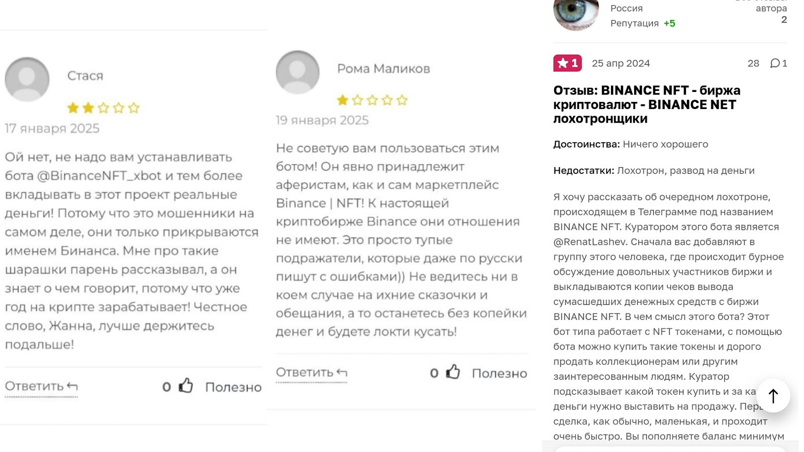 Отзывы реальных клиентов о Телеграмм боте Binance Nft