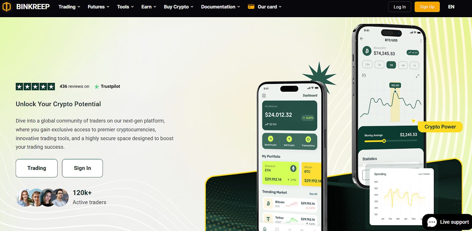 Binkreep — это биржа, предлагающая 150+ торговых активов. Площадка основана в Европе, поддерживает три национальные валюты и, по словам создателей, ее торговый оборот в сутки превышает 10 млн долларов. Трейдерам предложен стейкинг, а также крипто-кредитование под процентную ставку от 0.3%. Пользователям обещают быстрые сделки, и далее расскажем о бирже в деталях.