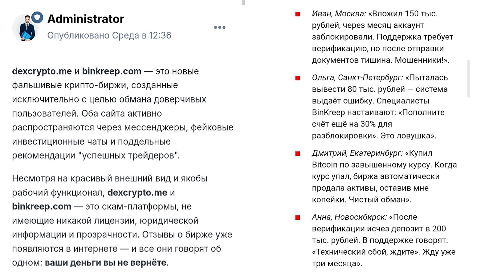 В сети есть отзывы, указывающие на признаки скама у Binkreep.