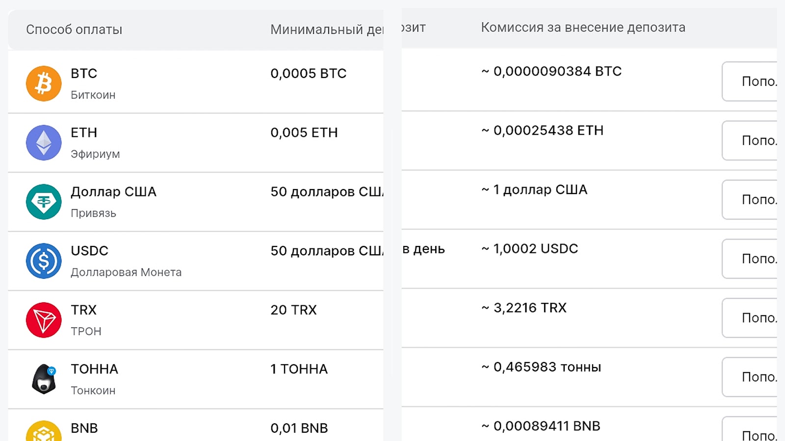 На сайте binkreep com указано, что за обычный трейдинг берется 0.1% сборов. Если была выбрана маржинальная торговля, тогда будет браться 0.078% каждый день. За депозиты берется следующая плата: