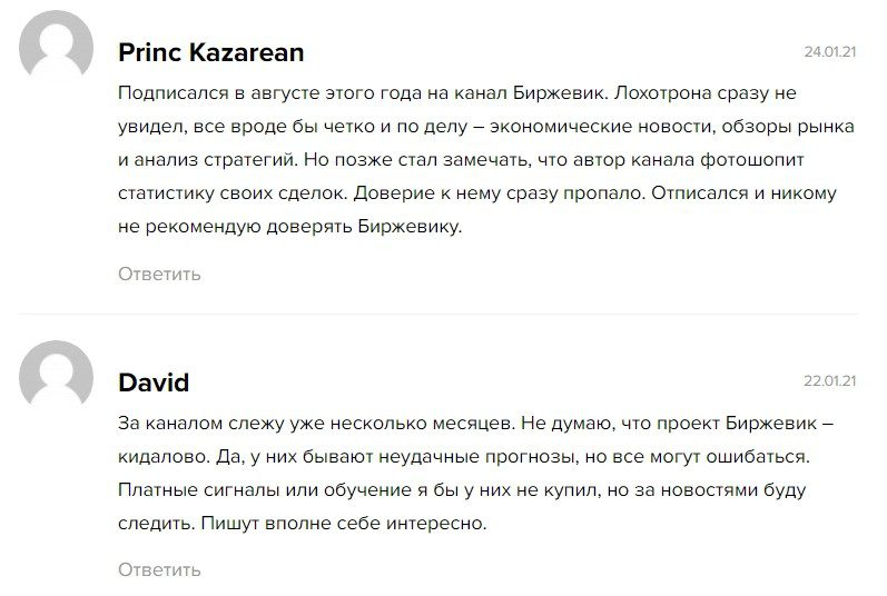 Из минусов — трейдер не может гарантировать заработок своим подписчикам. А что вы думаете о проекте Биржевик? Поделитесь своими впечатлениями в комментариях под статьей.