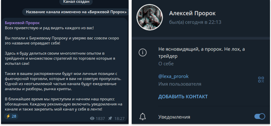 Алексей или lexa prorok начал просветительскую деятельность 1 августа 2024 года с приветственной речи: о себе он не рассказал, лишь определил рамки канала. Вторым постом и далее были сигналы.