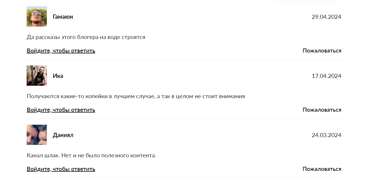 • автор зарабатывает на партнерках, ему платят за привлечение пользователей в проекты, среди них могут быть и сомнительные;