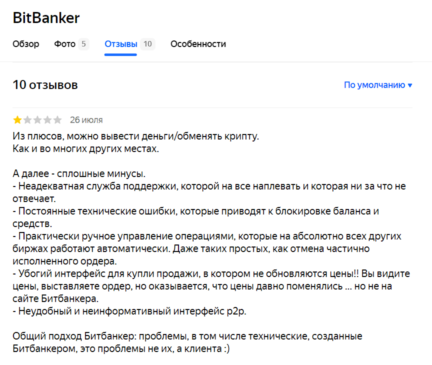 Клиенты биржи Bitbanker ru отмечают следующие «минусы» проекта: