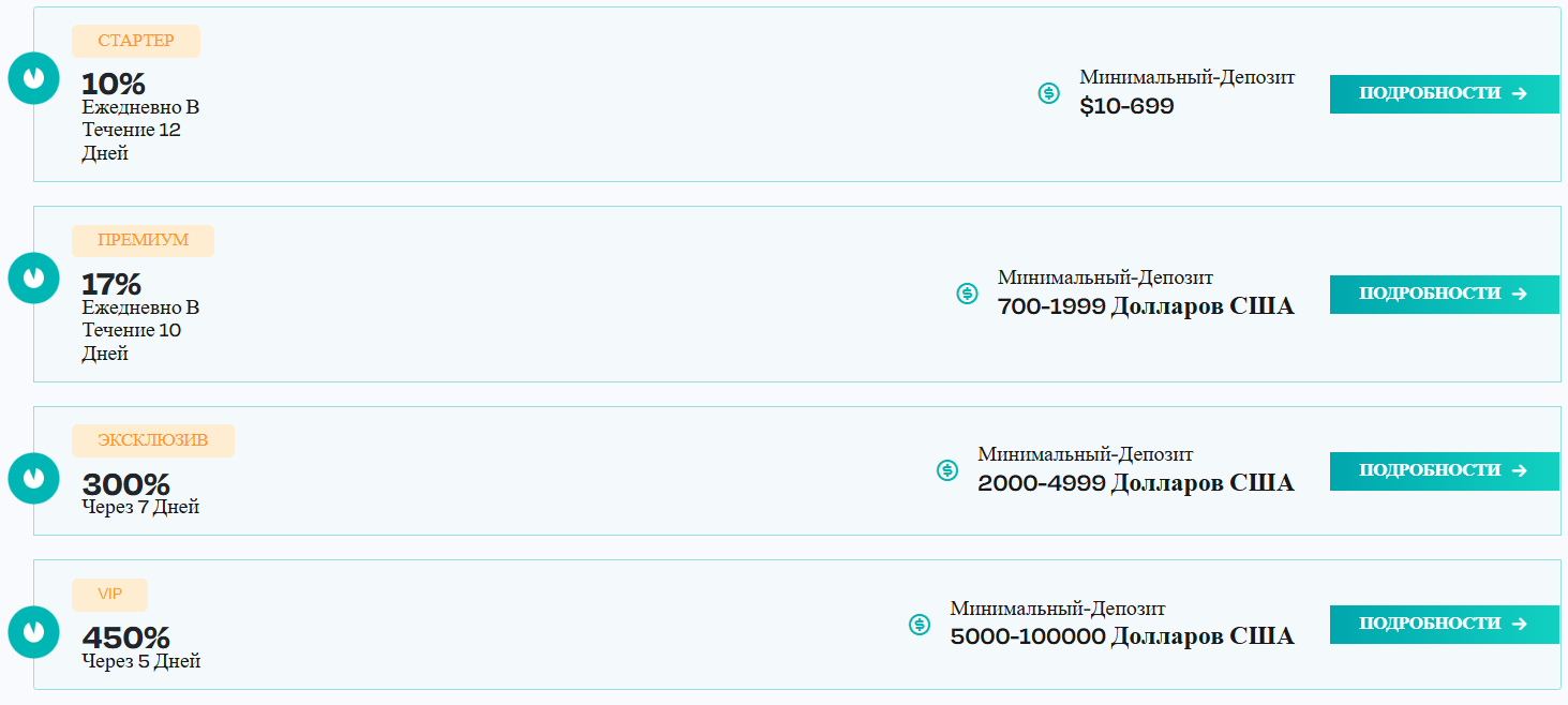 Bitbullpro net предлагает четыре тарифа с разной доходностью: