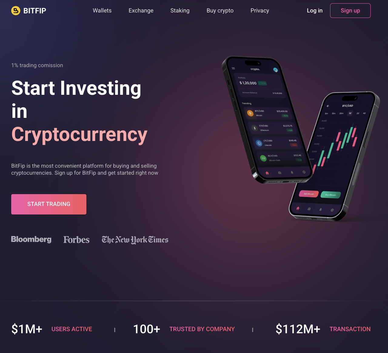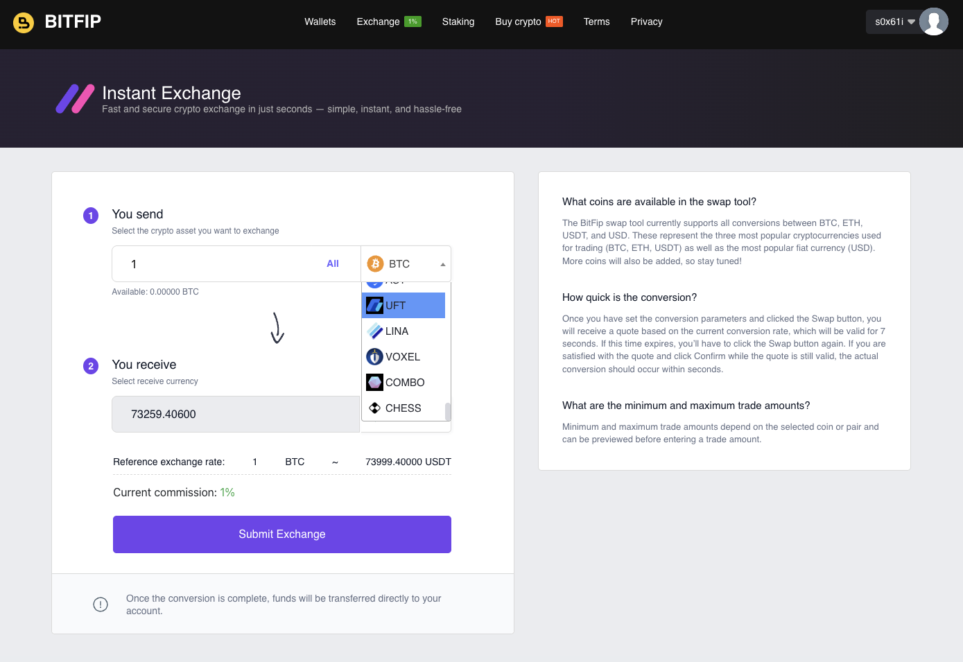BitFip — якобы криптобиржа, инструментами которой пользуется миллион трейдеров. На платформе представлен функционал для эксчейнджа и стейкинга цифровых активов.