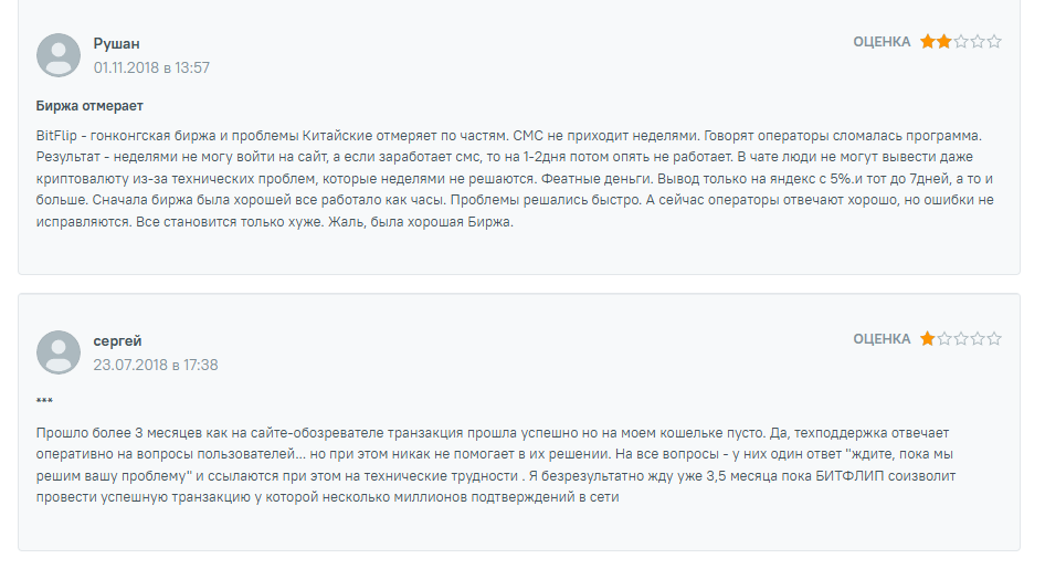 Наша команда пришла к выводу, что сервис «Бит флип» вызывает опасения. Ниже приведены отрицательные черты площадки: