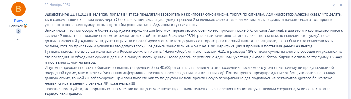 Действительно интересны будут отзывы немного о другом – о так называемом Bit Kub боте. Это мошенническая схема торговли якобы по сигналам от бота в Телеграм, которая якобы должна позволить быстро зарабатывать при торговле именно на этой бирже. Суть развода можно прочитать в данном развернутом отзыве: