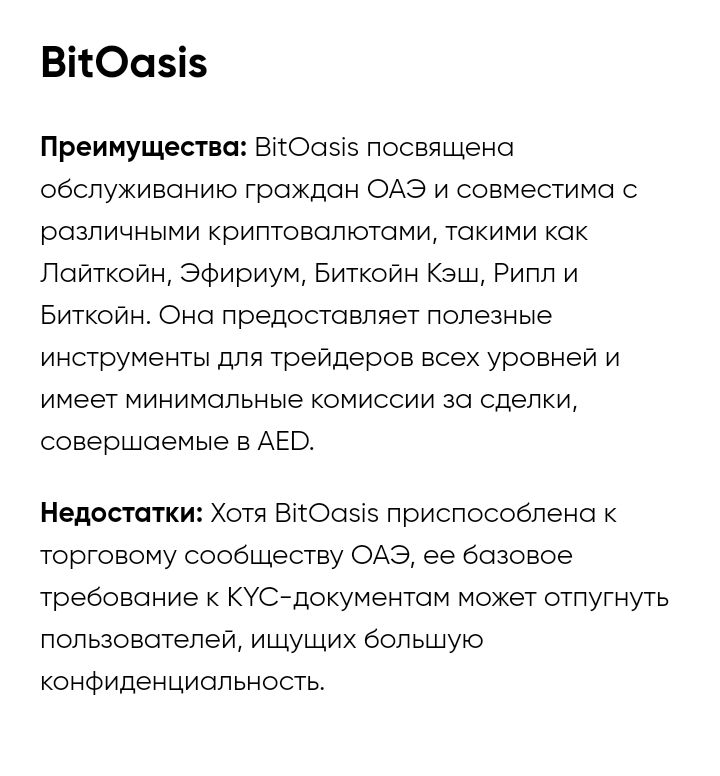 Bitoasis — это криптобиржа, популярная в Объединённых Арабских Эмиратах. Она поддерживает локальные валюты некоторых стран Персидского Залива. На сайте проекта доступны только арабский и английский языки.