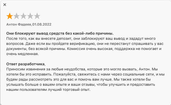Другие пользователи жалуются на высокие комиссии за транзакции, низкое качество клиентской поддержки. Утверждают, что ответ на вопросы и решение проблем занимают много времени. В отзывах также отмечается, что иногда возникают технические трудности с выводом средств.