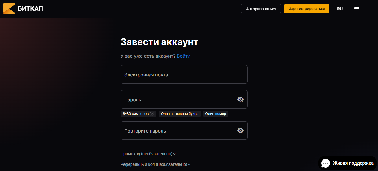 В первую очередь стоит отметить отсутствие отдельного приложения для смартфона. Неужели международная компания, считающая себя лидером в биржевой торговле криптой, не может потратиться на разработчиков для создания платформы на Android/iOS? Разве суточный объем, заявленный Bitqap в $10 млн, не достаточен для создания удобства пользователям?