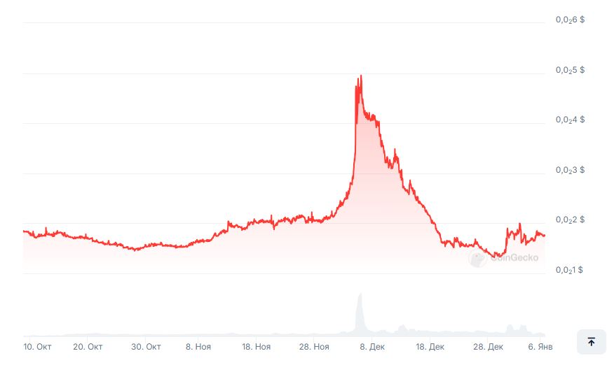 За последний месяц 2024 года наблюдался рост активности Битшарес, курс поднимался до 0,0049 доллара 6 декабря и падал до 0,0013 28 декабря.