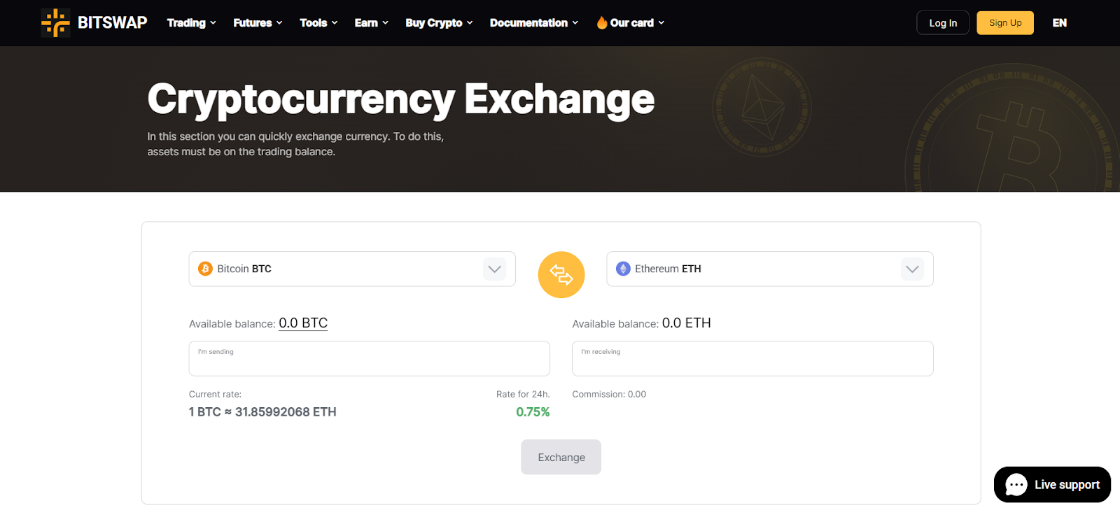 Биржа BitSwap предлагает базовый набор услуг для торговли криптовалютой. Здесь можно обменивать, покупать и продавать популярные монеты. Платформа предлагает возможность инвестировать в альткоины или ликвидность перспективных пулов. Плюс к этому, пользователи могут использовать торгового бота. Он самостоятельно создает сделки, определяя наиболее выгодные из них.