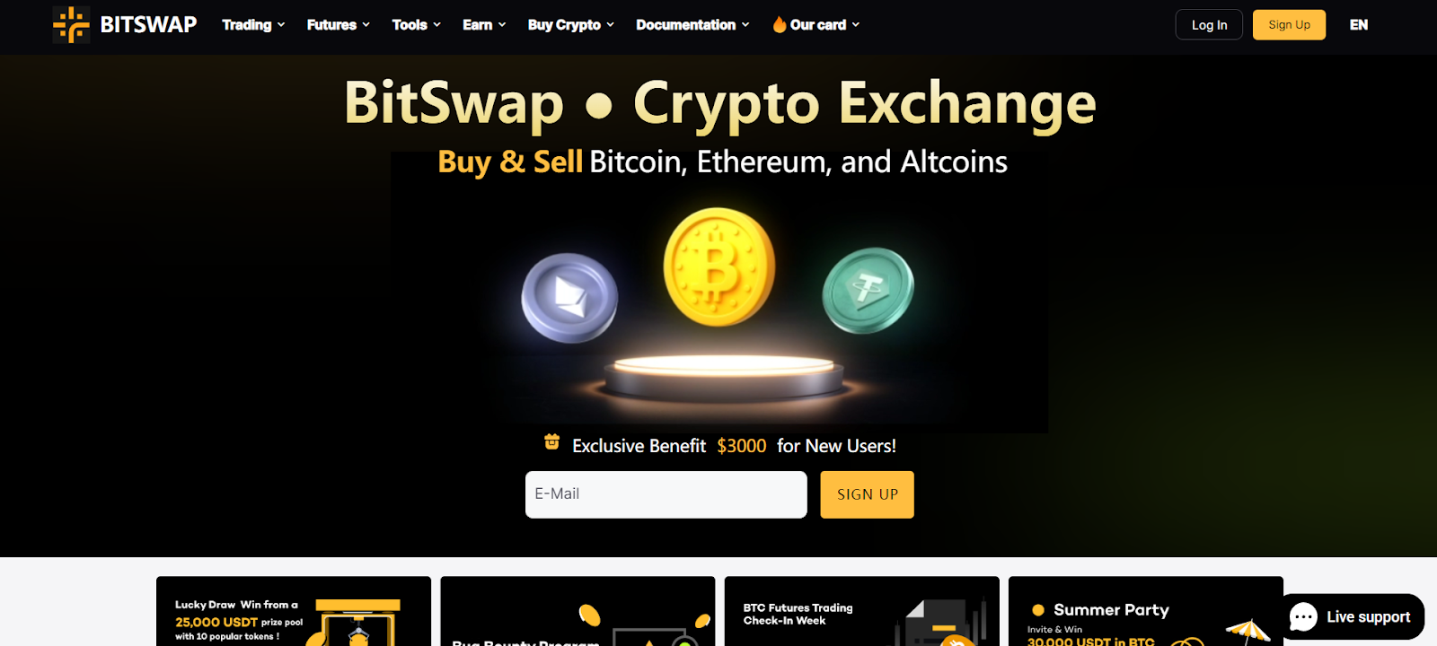 Платформа BitSwap cx предлагает торговать на мировых рынках. Пользователям доступны основные инструменты инвестировать. Здесь можно покупать, продавать и стейкать криптовалюту.