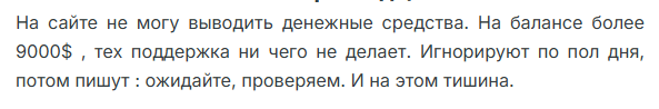 В отрицательных комментариях о работе BitSwap cx бывшие клиенты отмечают, что торговать на этой платформе очень опасно. Проект имитирует торговлю, чтобы пользователи вкладывали больше денег. Однако снять прибыль со счета невозможно. Биржа отказывает в выводе средств.