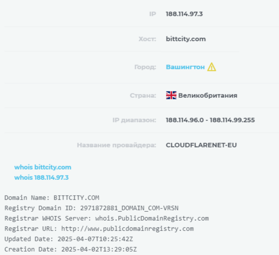 Получается, что сайт Bittcity Com функционирует всего три недели. А это значит, что история создания проекта является вымышленной. На это намекает и то, что в сети мы обнаружили еще несколько сайтов с таким же интерфейсом.