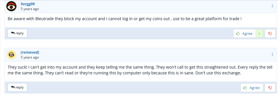 Большинство отзывов о Bleutrade негативные. Люди жалуются на проблемы, которые копились годами, а администрация их так и не решила. Самая частая претензия – зависания сайта. Во время активных торгов платформа может отключиться на несколько минут. Трейдеры теряют деньги из-за того, что не могут закрыть позицию.
