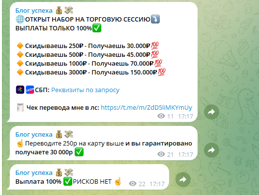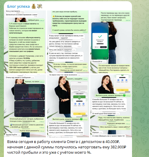 Канал Блог Успеха позиционируется как инвестиционный проект с заработком на криптовалютном арбитраже и пампе монет. Администратор обещает быстрый доход, гарантированные выплаты и полное отсутствие рисков. Мы разобрали структуру канала, механику привлечения, а также отзывы о заработке с командой ETH Nasyta. Выводы в конце обзора.