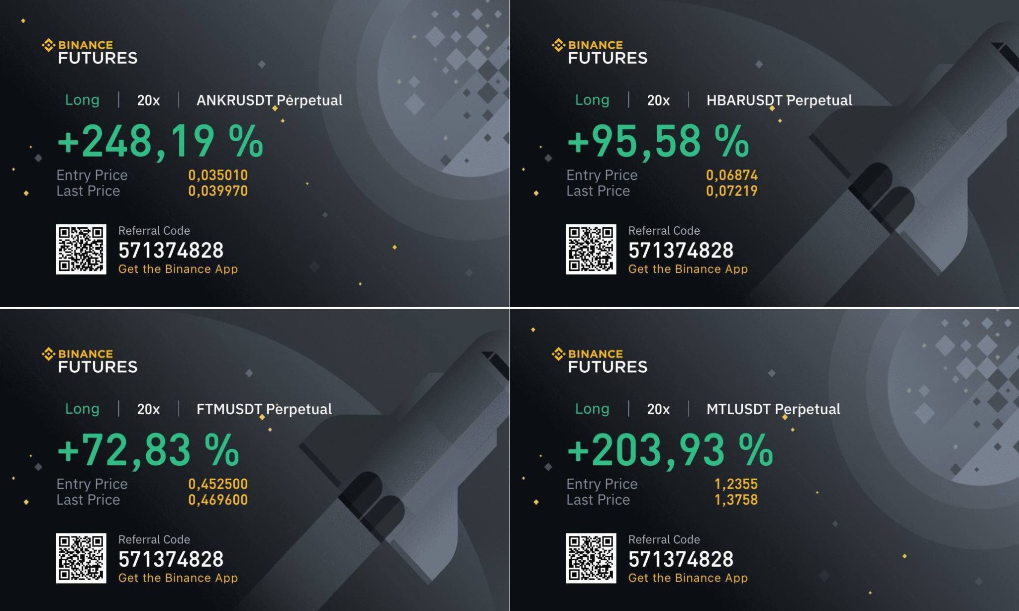 Как доказательство суперуспешной торговли, Анастасия публикует скриншоты сделок. Все они плюсовые, но мы не нашли ни одной с обещанным профитом 500%.
