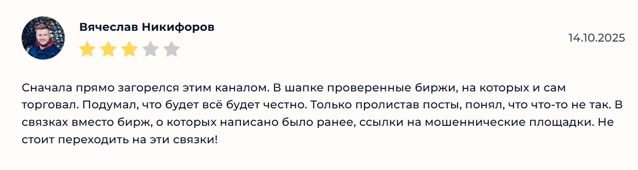 В отзывах об Артеме Антонове клиенты жалуются на качество сигналов и риски слива депозита. Они отмечают сомнительность проекта и размещение ссылок на мошеннические биржи. Не удивительно, что такое сотрудничество часто вело к убыткам.