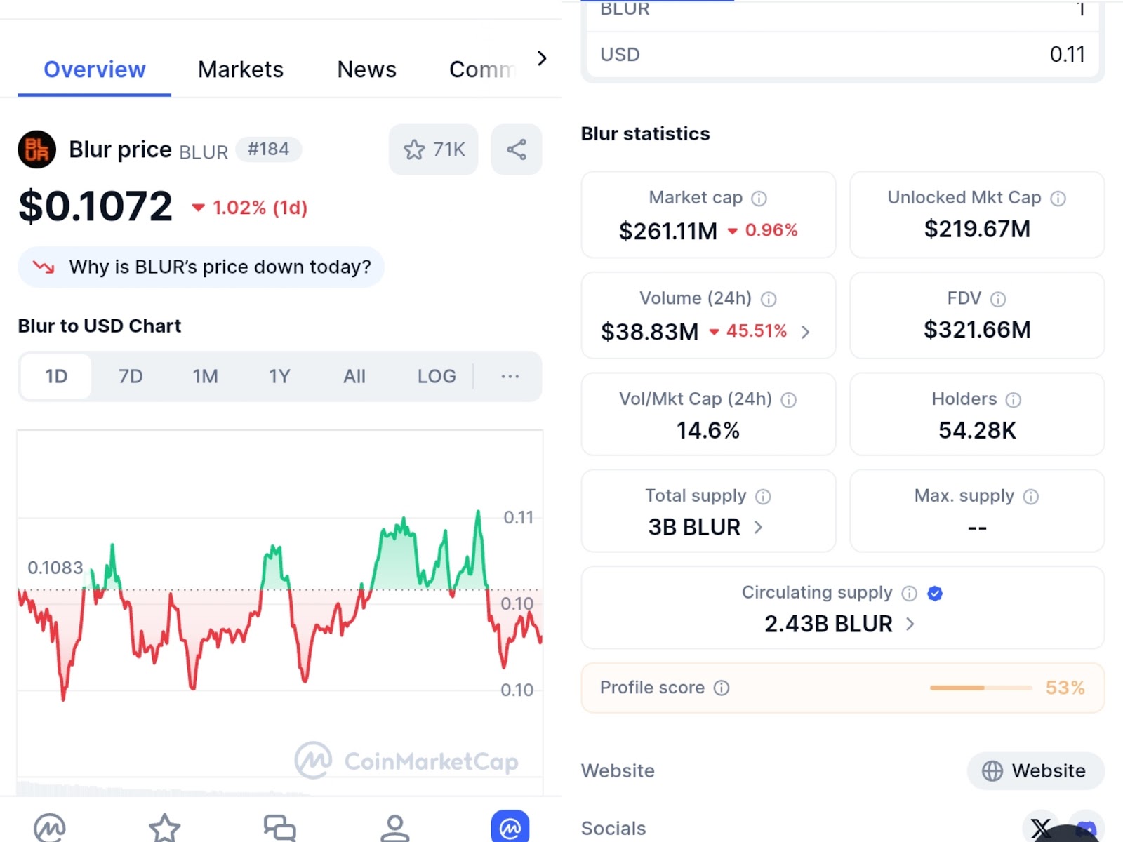 Blur является успешной НФТ площадкой, и она сотрудничает с влиятельными компаниями. Токен проекта прошел листинг на различных биржах, однако по сравнению с максимальной ценой стоимость монеты упала на более 99%.