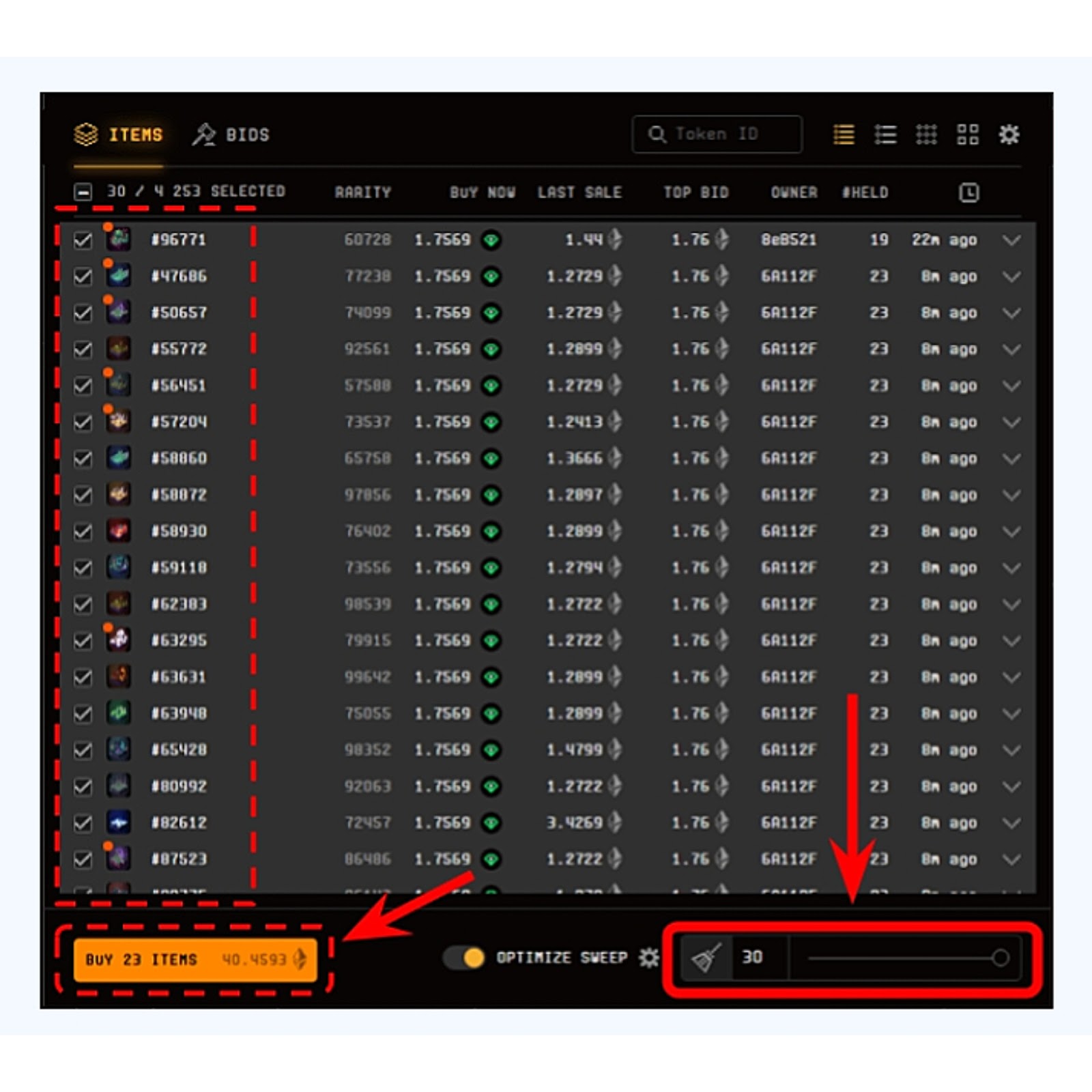Покупка NFT на бирже Блюр происходит таким методом: