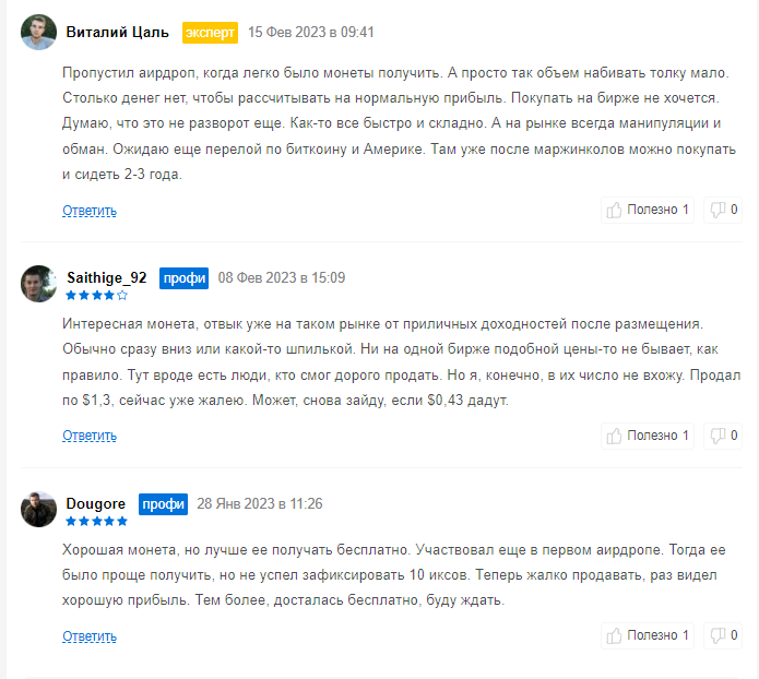 В сети много отзывов о токене проекта. Инвестиции в Blur пользователи считают не очень перспективными, но участие в дропах пропускать не советуют. На раздачу претендуют те трейдеры, которые активно торгуют NFT, а дроп токена воспринимают как бонус к своей работе. Что касается самой платформы Блур NFT, то позитивное отношение к Блюр видно по той скорости, с которой проект захватил рынок. Менее чем за один год Blur вытеснил всех конкурентов и стал лидером NFT торговли.