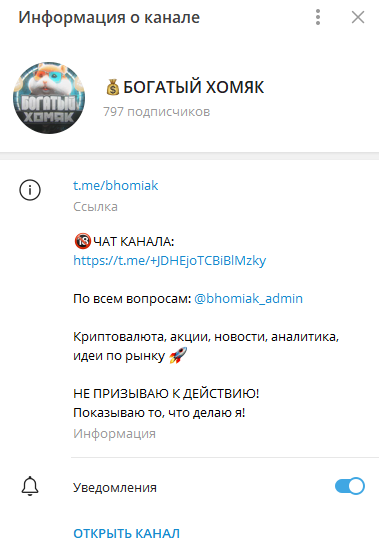 Мнения клиентов, отзывы о Телеграм-канале Богатый Хомяк