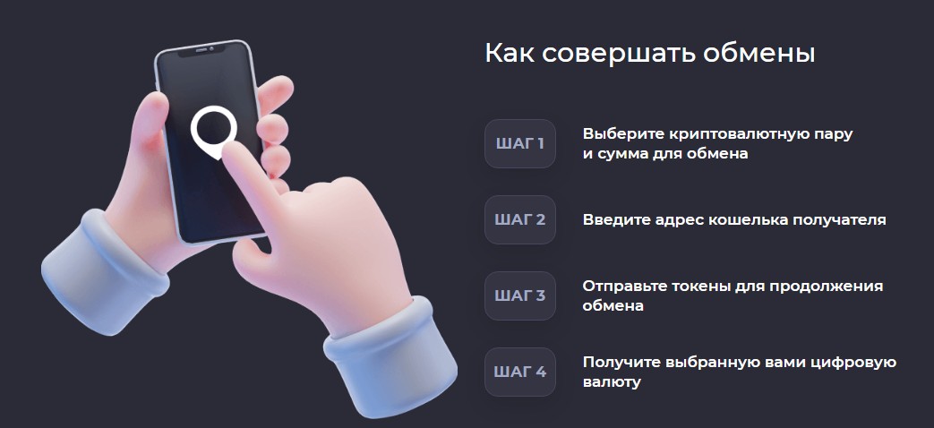 Переводить деньги предлагают только двумя способами. На криптовалютный кошелек и банковскую карту. Другие платежные методы не предусмотрены. Информации о комиссии нет. Неизвестно, включена она в курс или рассчитывается отдельно. Нет сведений и о количестве подтверждений сети или скорости обработки заявок. Зато установлены минимальные лимиты. В валюте они составляют 9100 рублей. В меньших суммах аферисты не заинтересованы.