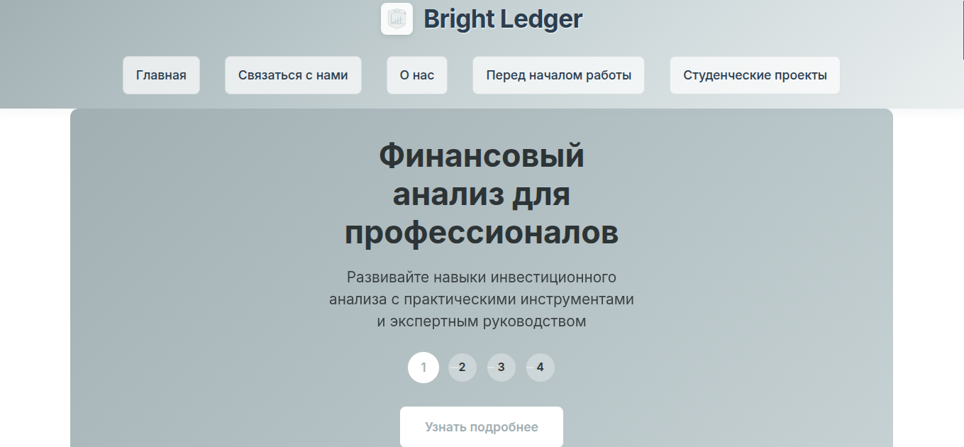 Стоит отметить, что сайт учебного сервиса «Брайт Леджер» выполнен максимально просто. За счет несложной концепции цифровой сервис легко прогружает даже слабый компьютер или смартфон. Однако простота пользовательской среды негативно отразилась на наличии крайне важно информации, необходимой для лучшего ознакомления с проектом.
