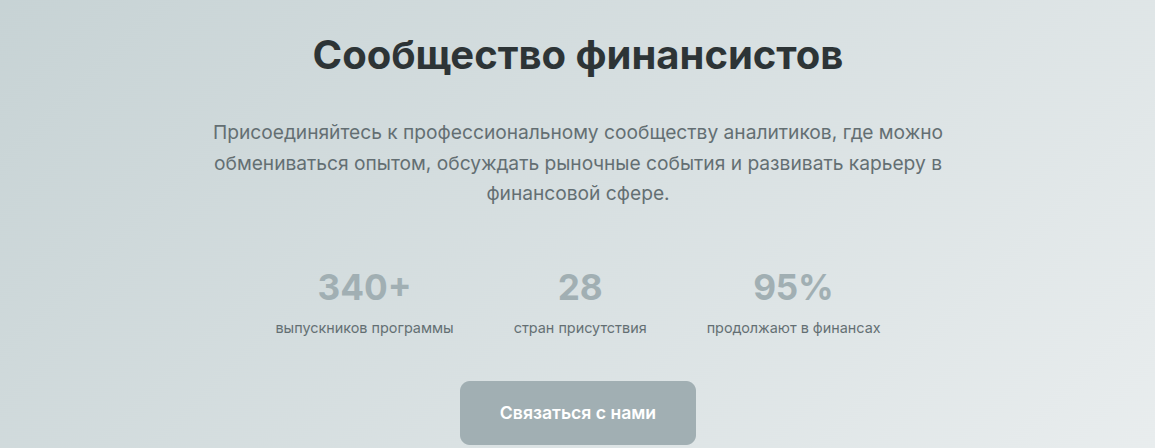 - Успешность студентов. Более 95% студентов строят карьеру в финансовом секторе.
