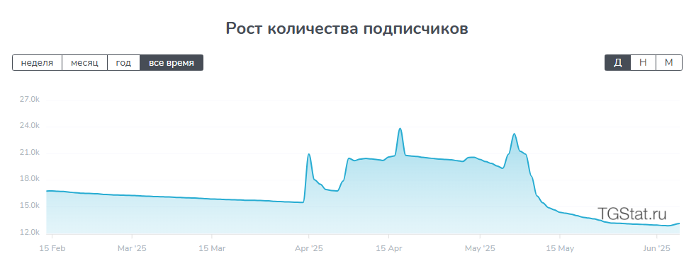 Представленные данные взяты с открытых онлайн-мониторингов TGStat и Telemetr.