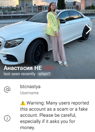 Новички-инвесторы нередко нуждаются в помощи. На пути таковых возникают группы подобные Анастасия Закрытая Группа (также Анастасия Приватная Группа, Анастасия Closed Channel), в которой трейдер берёт инвестиции и обещает умножить их многократно. У Анастасии (кроме имени об инвесторе ничего неизвестно) Btc Anastasia есть несколько страниц, одна из них уже отмечена Телеграммом как скамер.