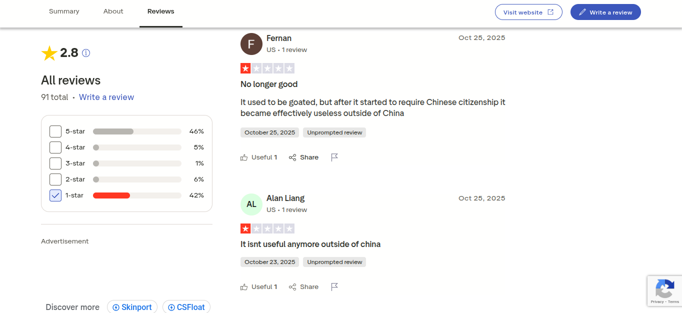 • Много негативных отзывов о бирже Buff 163 com. Пользователи часто жалуются на отсутствие нормальной работы.