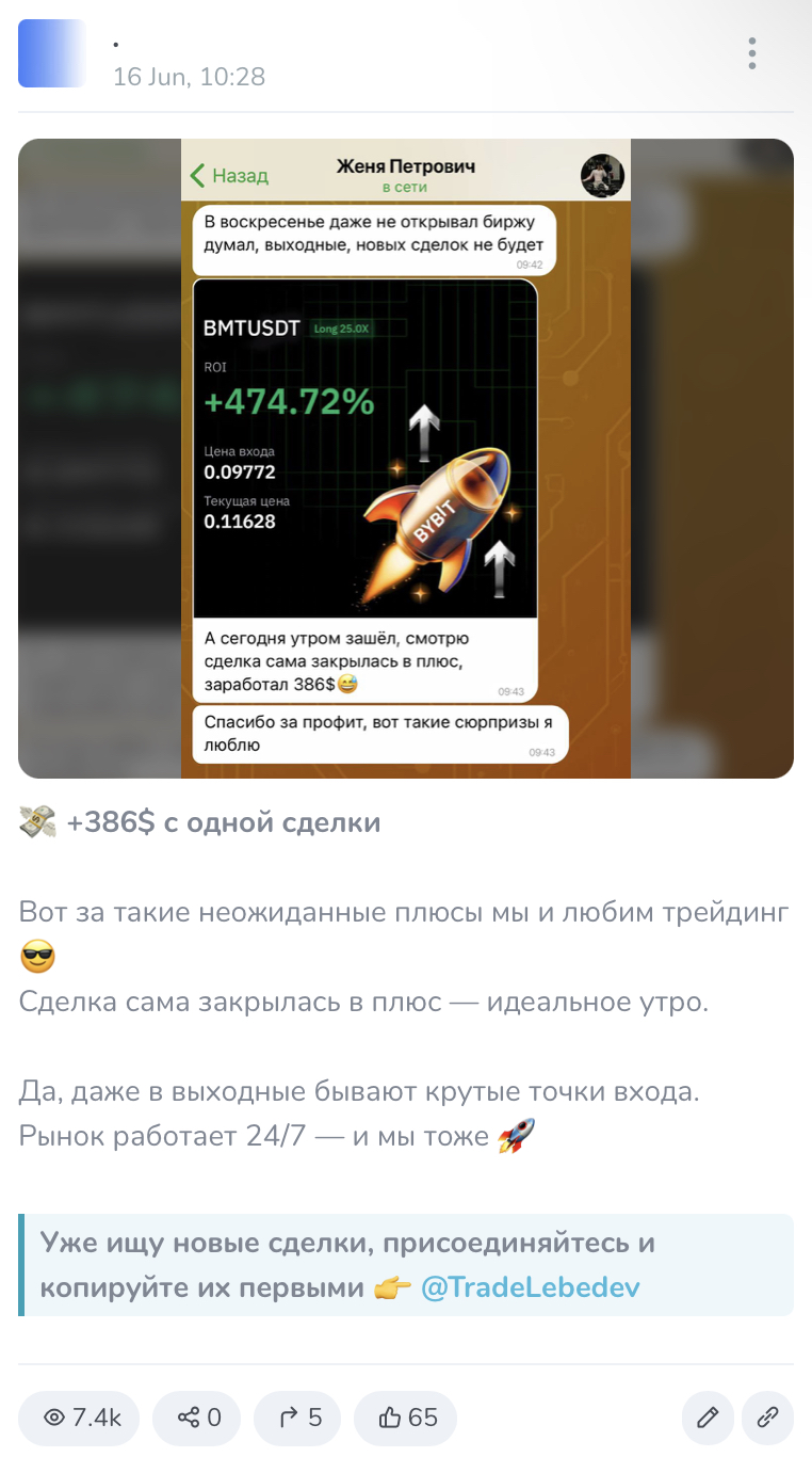 Обзор Телеграм канала Bybit Pro Official Channel: на чем зарабатывает трейдер Михаил Лебедев и его команда, отзывы на tradelebedev
