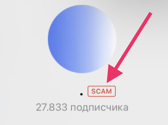 Для начала обратите внимание на пометку SCAM, которая ставится самим Телеграмом.