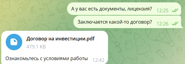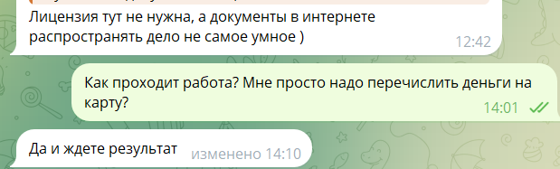 Кажется, что трейдер Byselldldldl честен и ничего не скрывает. На вопрос о документах он заявляет, что лицензия ему не нужна, и предоставляет договор.