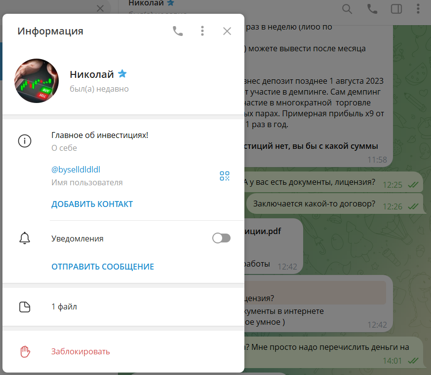 Byselldldldl – никнейм инвестора, который также называется «ЛОНГ», Николай и Nik niky nik. Он предлагает вкладывать деньги и зарабатывать по 2% в день и утверждает, что сам успешно торгует на бирже. Обещания слишком хороши, чтобы быть правдой, и мы решили проверить, не мошенник ли это.