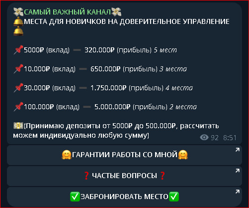 Канал bystrye dengi ot 0 do 1000000 обещает легкий заработок. Админ обещает увеличить инвестиции подписчиков в разы. Мы проанализировали информацию о канале, его админе, отзывы и пришли к выводам: