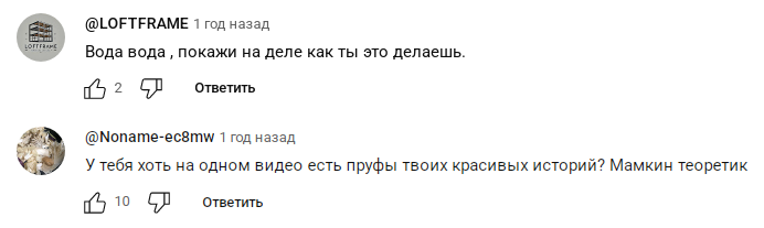 Под видео пользователи оставляют много негативных комментариев. Люди обвиняют фальшивого эксперта в наличии воды и отсутствии конкретики. Скамер не публикует доказательств и убедительных аргументов в пользу эффективности своего метода.