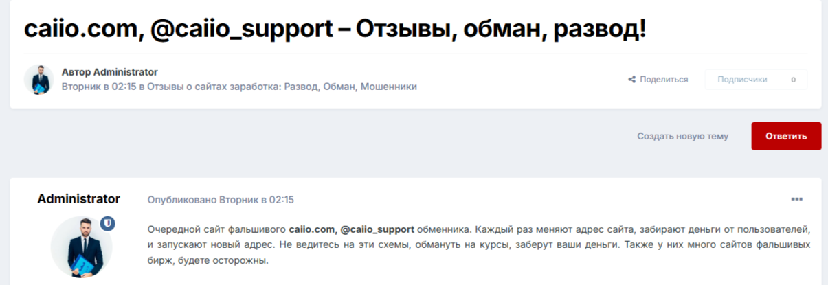 В сети и криптосообществах о «Саиио» мало кто говорит. В открытых источниках почти нет информации от пользователей, а на популярных сайтах и форумах этот обменник вообще не обсуждают. В некоторых обзорах пишут, что Caiio com — это скам и развод. Он обманывает людей на курсе и забирает деньги.