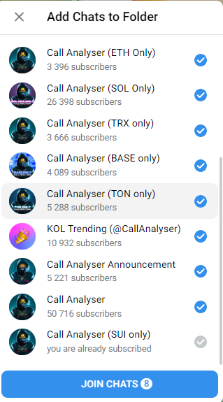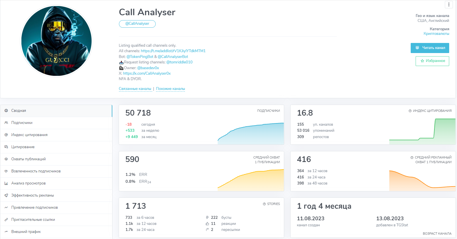 Среди телеграм проектов, Call Analyser принадлежат общие и типизированные каналы: