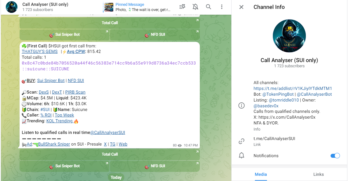 На официальном сайте проекта, callanalyserbot lol, который зарегистрирован в феврале 2024 года, располагается дорожная карта команды, их NFT коллекция и ссылки на различные социальные сети.
