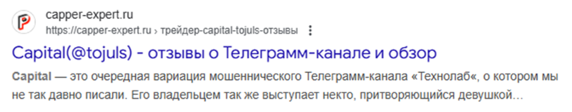 В материалах в интернете пишут, что Capital – перезапуск другого мошеннического проекта от одного и того же пользователя, выдающего себя за Юлию.
