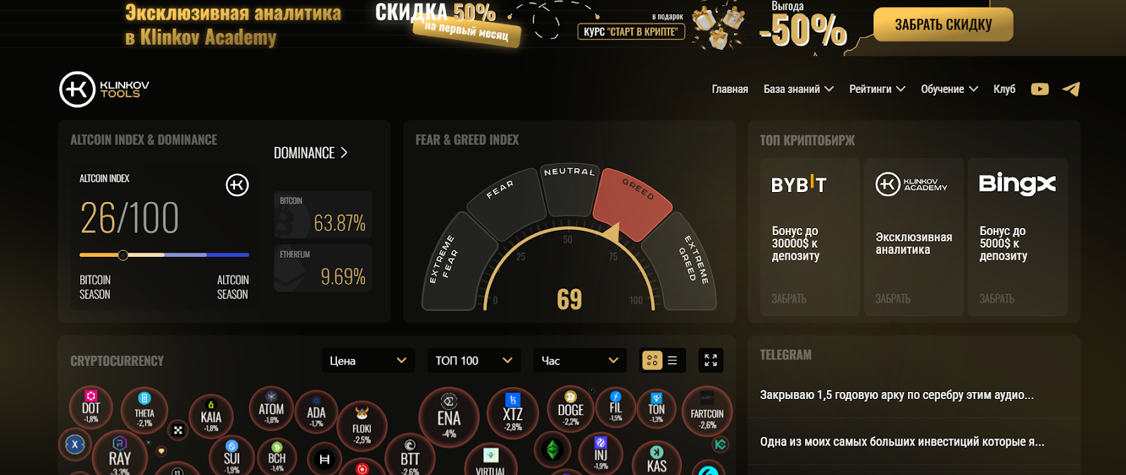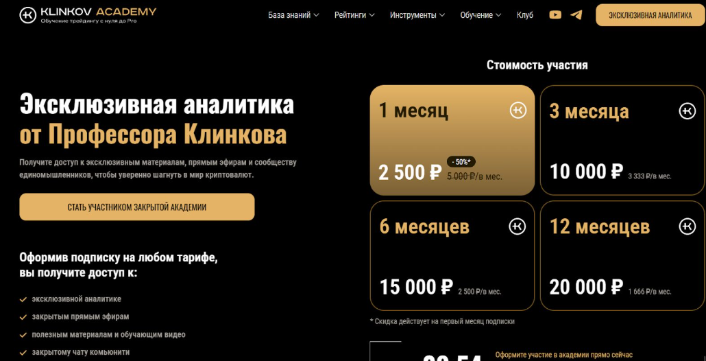 Klinkovacademy – интернет-сообщество для инвесторов и трейдеров, где делятся аналитикой по рынку, ведут портфель и проводят прямые эфиры. Собственник ресурса предлагает услуги по обучению криптовалютному инвестированию, а также консультационные материалы.